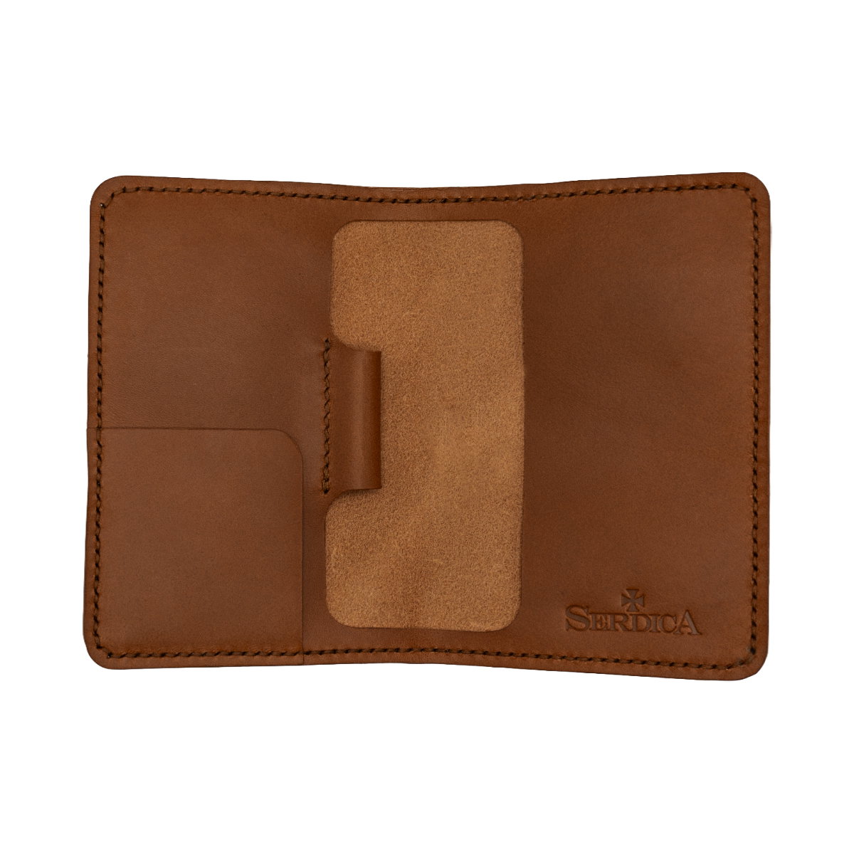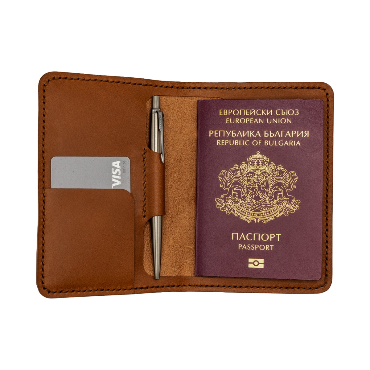 Портфейл за паспорт със слот за карти, държач за химикалка и централен отвор за банкноти и документи изработен от Италианска кожа.